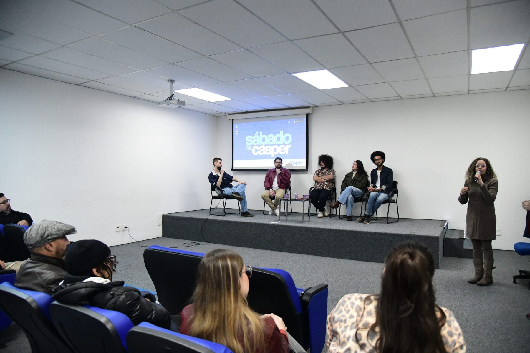 O “Sábado na Cásper” reuniu ex-alunos dos quatro cursos de graduação da instituição: Amanda Oestreich, de Jornalismo; Caio Bottan de Publicidade e Propaganda; Austin Christopher, de Relações Públicas e Felipe Ferrari, de Rádio, TV e Internet.
