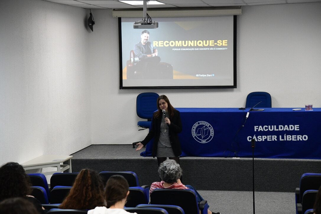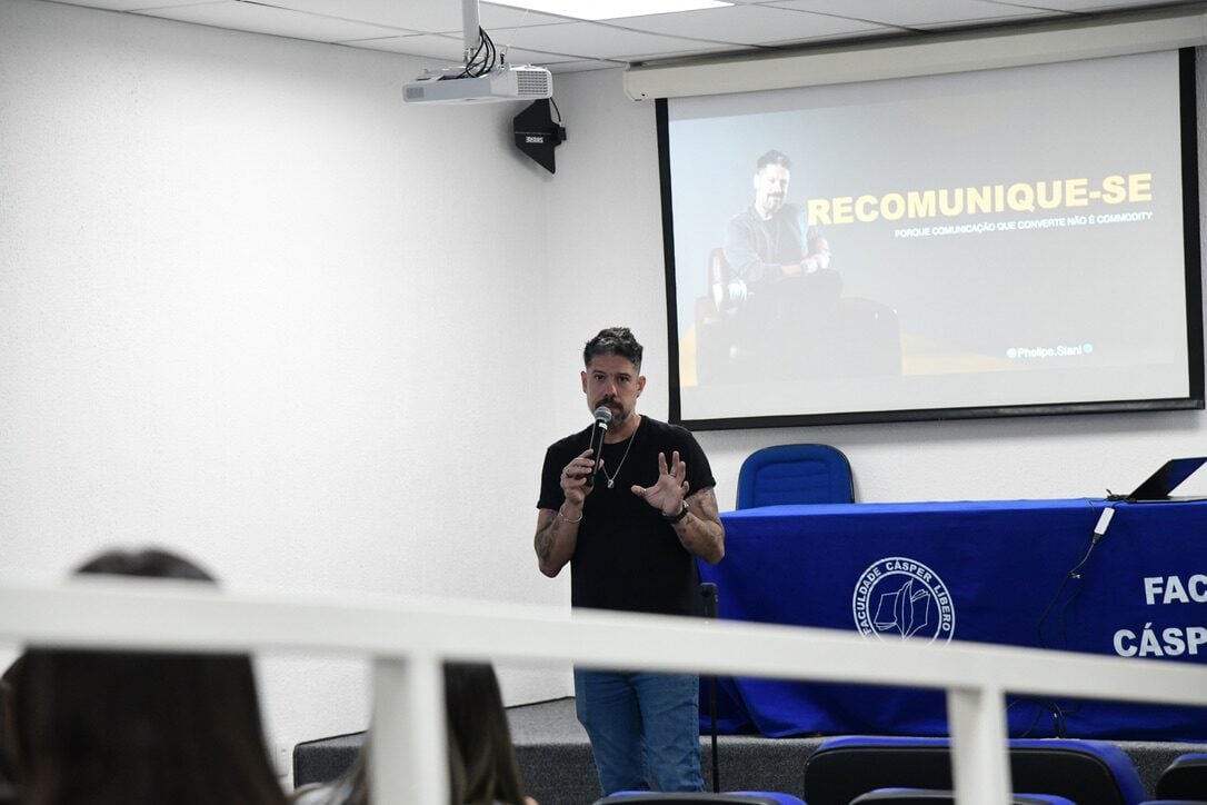 Na última segunda-feira, dia 25 de agosto, a Faculdade Cásper Líbero recebeu o jornalista e empresário Phelipe Siani em uma palestra sobre tecnologia e comunicação. O evento, marcado pela presença de alunos da graduação e da pós-graduação, possibilitou a discussão sobre comunicação estratégica nas redes sociais, o contato com novas tecnologias e oportunidades de atuação no mercado.